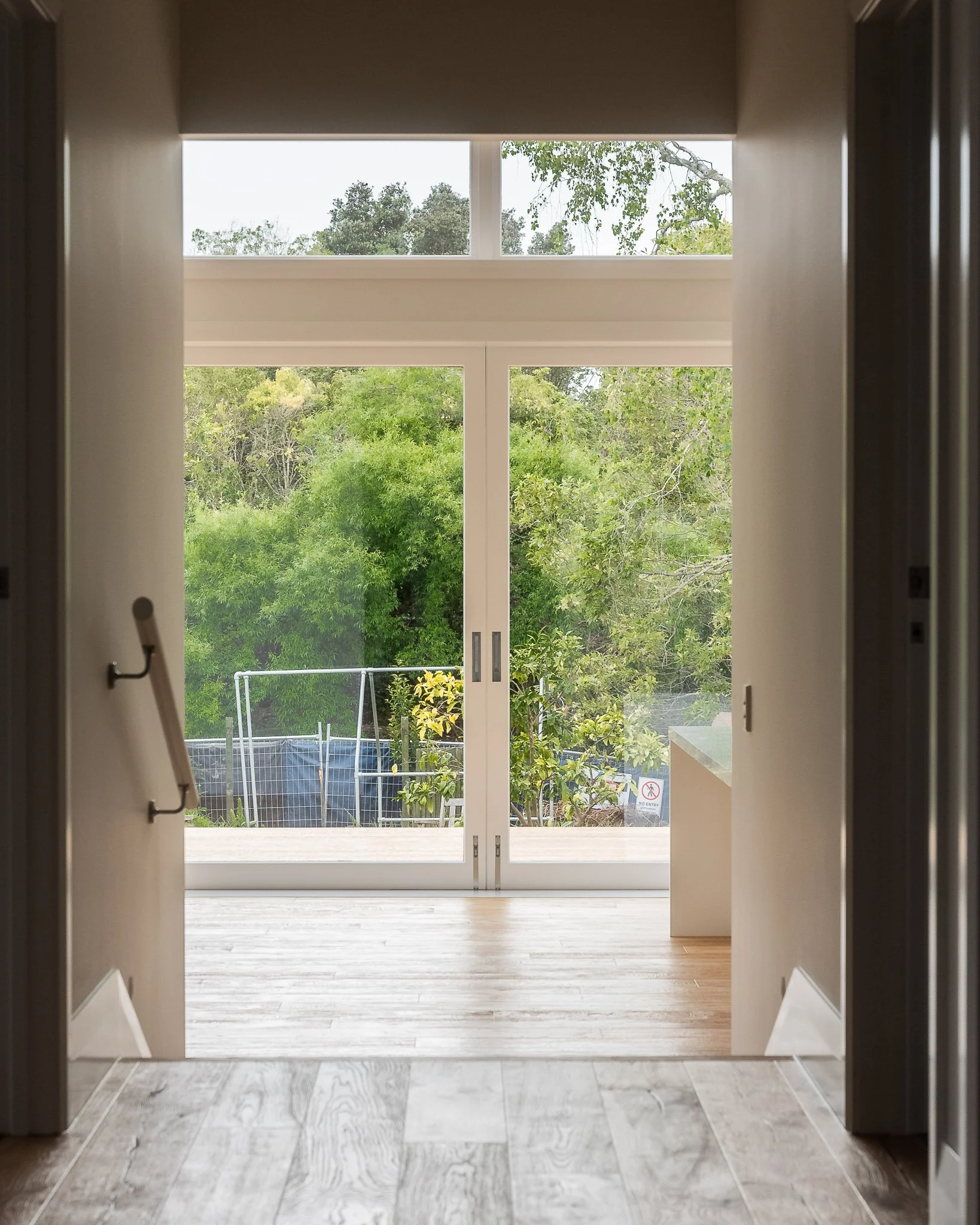 Designed by Jones Architects and built by Alpha 1, this rear extension features overclad sliding doors with Breezway louvre sidelight windows and a gable-end fixed overlight. This bespoke timber joinery project created an indoor-outdoor flow with thermal performance and style.